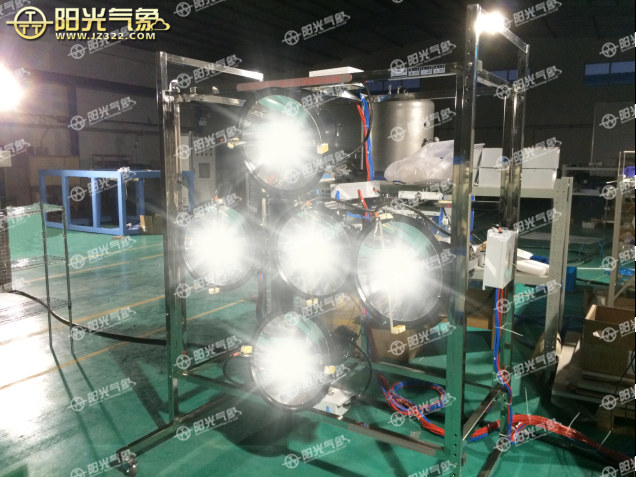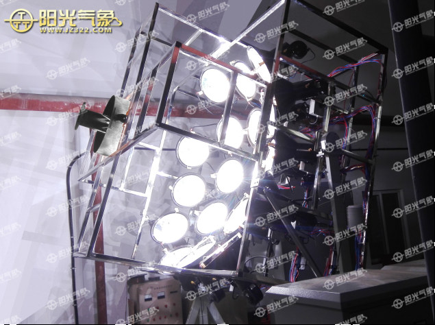 1.1 TRM-PD1H型聚光式太陽模擬發(fā)射器(矩陣式)是錦州陽光科技發(fā)展有限公司根據(jù)多年太陽模擬器生產(chǎn)經(jīng)驗開發(fā)的矩陣式模擬光源(稱人造太陽),專用于太陽能產(chǎn)品室內(nèi)測試的實驗設備。TRM-PD1H型聚光式太陽模擬發(fā)射器(矩陣式)具有操作簡單、使用方便,安全可靠的特點。模擬器光源采用(20)組獨立的聚光點光源,組成矩陣式結(jié)構(gòu),光源的個數(shù)、位置、光強都靈活可調(diào),以保證有效輻照面積內(nèi)的光均勻性和穩(wěn)定性。采用主機現(xiàn)場與微機網(wǎng)絡聯(lián)合定時控制功能,可以手動或自動啟動光源,定時控制發(fā)光時間,為保證光源質(zhì)量,用太陽輻射儀實時監(jiān)測光源的輻射及亮度,由于氙燈照射溫度較高,設有測溫報警及電氣漏電保護裝置以保證系統(tǒng)的安全。該產(chǎn)品適用于檢測中心,科研機構(gòu),太陽能產(chǎn)品生產(chǎn)廠家等單位。