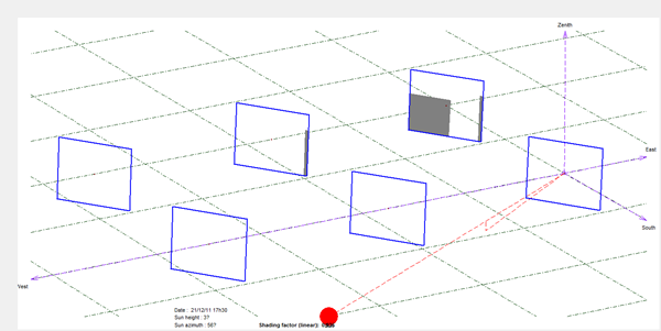 TT追日跟蹤器設(shè)計高度角為20°~80°,因此在設(shè)計跟蹤器排布時需考慮到太陽高度角在大于20°時,跟蹤器之間不會互相遮擋。
