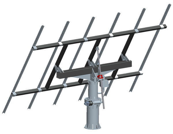 根據(jù)追日跟蹤器跟蹤的維數(shù)(從一個或兩個方向上跟蹤太陽)我們將跟蹤系統(tǒng)分為單軸跟蹤和雙軸跟蹤,作為高倍聚光光伏發(fā)電系統(tǒng)中,我們使用雙軸跟蹤方式。