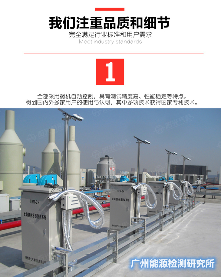 多年來(lái)錦州陽(yáng)光氣象科技公司建設(shè)了眾多太陽(yáng)能檢測(cè)中心,均都通過(guò)了CNAS認(rèn)證,得到了認(rèn)可. 我們根據(jù)多年研究太陽(yáng)能熱水器檢測(cè)設(shè)備的經(jīng)驗(yàn),結(jié)合了檢測(cè)技術(shù),現(xiàn)推出先進(jìn)的網(wǎng)絡(luò)化太陽(yáng)能測(cè)試系統(tǒng), 可滿(mǎn)足廣大太陽(yáng)能熱水器生產(chǎn)廠(chǎng),質(zhì)檢所,檢測(cè)中心,科研教學(xué)等領(lǐng)域的使用。