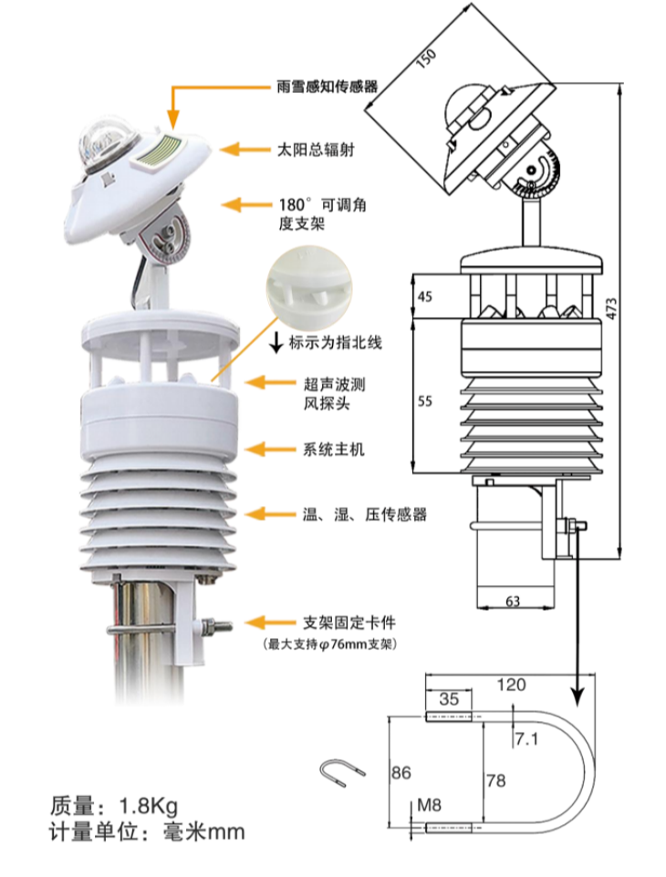 1. 新型一體化結(jié)構(gòu)設(shè)計(jì):設(shè)備采用一體化結(jié)構(gòu)設(shè)計(jì),集成了太陽輻射、溫度、濕度、風(fēng)速、 風(fēng)向、大氣壓力、組件溫度,天氣狀況等多種傳感器,實(shí)現(xiàn)了多種環(huán)境要素的同步監(jiān)測。同時,設(shè)備支持按需定制,可根據(jù)用戶需求增加或減少監(jiān)測要素。
