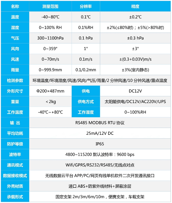 PC-8K型氣象六參數(shù)環(huán)境監(jiān)測(cè)儀是我公司自主研制的一款測(cè)量多種氣象要素的一體化氣象站,可同時(shí)測(cè)量大氣溫度、大氣濕度、風(fēng)速、風(fēng)向、氣壓、雨量等主要?dú)庀笠亍F渲杏炅繛楦呔确肥接炅總鞲衅?,其特點(diǎn)是精度高,響應(yīng)速度快,串口輸出,方便用戶直接通過PC或外接儀器進(jìn)行采集。