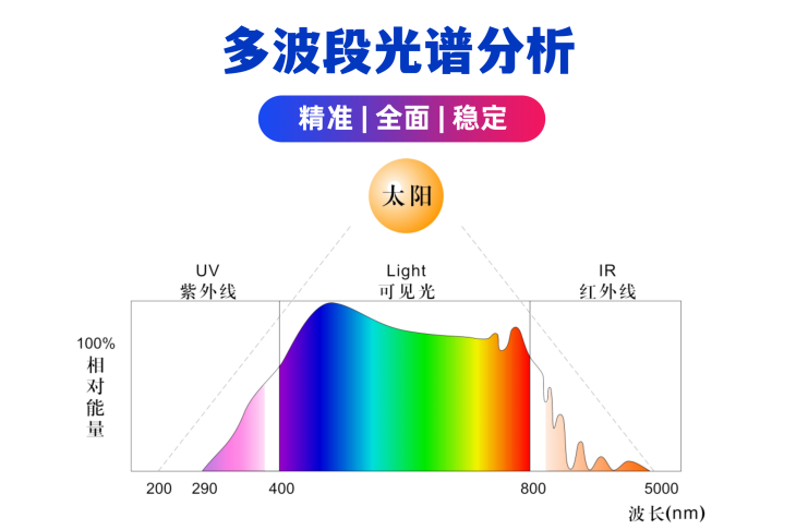 太陽(yáng)總輻射、紫外光、綠光、紅橙光、紅外光、紫藍(lán)光、可見(jiàn)光、近紅外、遠(yuǎn)紅外