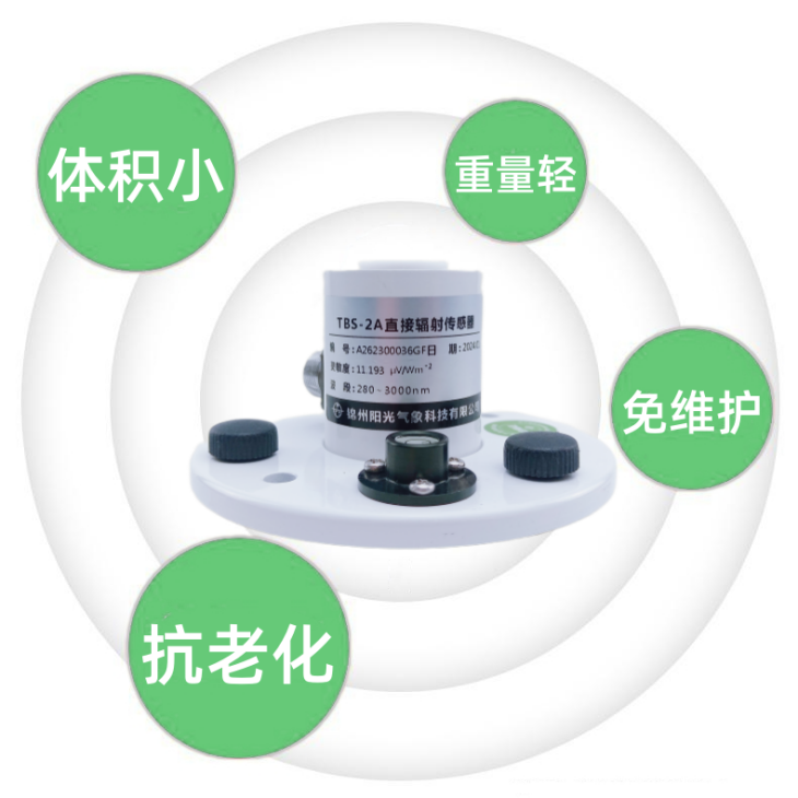 TBS-2A直輻射傳感器專門用于監(jiān)測和記錄太陽直接輻射的強度。其核心部件是高精度感光元件,這些元件對光線具有極高的敏感性,能夠捕捉太陽輻射中未經(jīng)大氣散射、反射或吸收的那部分能量,精確地將光信號轉(zhuǎn)換為電信號,通過測量這一電信號的大小,可以準確反映太陽光的直接輻射強度。儀器本身沒有移動部件、不需供電、免于維護,能夠勝任野外的長期監(jiān)測使用。