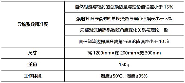 對流和輻射綜合傳熱實驗儀是一臺研究對流與表面輻射復(fù)合換熱,測量水平圓管自然、強(qiáng)迫對流換熱系數(shù)以及總體能量守恒分析的實驗教學(xué)設(shè)備,與傳熱測控儀配合使用,可進(jìn)行多組教學(xué)實驗,全面覆蓋圓柱繞流邊界層分離、水平圓管自然、強(qiáng)迫對流換熱理論,風(fēng)機(jī)轉(zhuǎn)速和流量電子調(diào)節(jié),連續(xù)、平滑調(diào)節(jié)。精確測量水平圓管的自然、強(qiáng)迫對流換熱系數(shù),精確測量邊界層分離角,展示局部換熱系數(shù)隨角度變化趨勢,結(jié)合全面詳細(xì)的數(shù)據(jù)處理和誤差分析方法,對學(xué)生達(dá)到科研啟蒙效果。