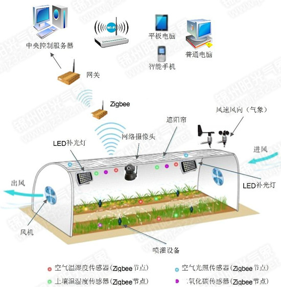 YG-SAC-SYS-01智慧農(nóng)業(yè)實訓(xùn)系統(tǒng)以農(nóng)業(yè)大棚模型為載體,能夠?qū)τ绊戅r(nóng)作物生長的環(huán)境傳感數(shù)據(jù)實時監(jiān)測,同時根據(jù)環(huán)境參數(shù)閾值設(shè)置實現(xiàn)對現(xiàn)場電氣設(shè)備的自動化控制,如風(fēng)扇、加濕器、除濕器、空調(diào)、照明設(shè)備、灌溉設(shè)備等,并支持遠(yuǎn)程控制。常用環(huán)境監(jiān)測傳感器包括空氣溫濕度、土壤溫濕度、環(huán)境光照等傳感器。亦可支持無縫擴展無線傳感器節(jié)點,如大氣壓力、水位監(jiān)測、CO2、煙霧、紅外人體感應(yīng)等傳感器。根據(jù)常見農(nóng)作物種植經(jīng)驗對系統(tǒng)關(guān)鍵值的設(shè)定進行判別,當(dāng)某種數(shù)據(jù)偏離設(shè)定值時,大棚會自動做出反應(yīng)(如溫度偏低時則打開供暖設(shè)施;溫度偏高時則開門通風(fēng);水量不足時則自動打開噴淋裝置等)。通過更加精細(xì)和動態(tài)的監(jiān)控方式對農(nóng)作物進行管理,更好地感知農(nóng)作物的生長環(huán)境,通過智能控制提高資源利用率和生產(chǎn)力水平。