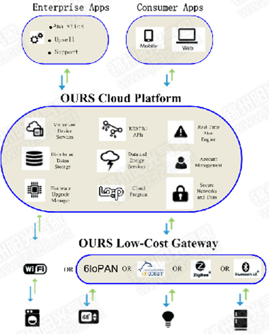 這些無(wú)線傳感節(jié)點(diǎn),結(jié)合網(wǎng)關(guān)、云端可以非常方便地構(gòu)筑各種完整的無(wú)線傳感網(wǎng)絡(luò),構(gòu)成ZIGBEE無(wú)線傳感網(wǎng)絡(luò)、藍(lán)牙無(wú)線傳感網(wǎng)絡(luò)、WIFI無(wú)線傳感網(wǎng)絡(luò)和EN-OCEAN無(wú)線傳感網(wǎng)絡(luò)。