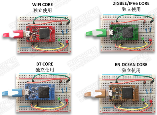 傳統(tǒng)實(shí)驗(yàn)箱只包含一種ZIGBEE 無(wú)線組網(wǎng),YG-IOTV3引入多種國(guó)際主流無(wú)線傳感網(wǎng)技術(shù),除了包含ZIGBEE 無(wú)線組網(wǎng),還包含藍(lán)牙無(wú)線組網(wǎng),WIFI 無(wú)線組網(wǎng)和EN-OCEAN無(wú)線組網(wǎng)。并且每個(gè)無(wú)線通信模塊可以獨(dú)立運(yùn)行。