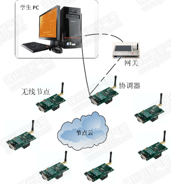 對(duì)單個(gè)學(xué)生,可以有不同無(wú)線節(jié)點(diǎn)構(gòu)成"節(jié)點(diǎn)云",學(xué)習(xí)過(guò)程主要側(cè)重于無(wú)線組網(wǎng)協(xié)議,學(xué)習(xí)無(wú)線組網(wǎng)協(xié)議的架構(gòu),原理及代碼實(shí)現(xiàn)。簡(jiǎn)單組網(wǎng),可以直接由協(xié)調(diào)器直接連接學(xué)生計(jì)算機(jī),通過(guò)編程環(huán)境實(shí)現(xiàn)組網(wǎng)協(xié)議學(xué)習(xí),也可以通過(guò)網(wǎng)關(guān)實(shí)現(xiàn)組網(wǎng)連接,并在網(wǎng)關(guān)上實(shí)現(xiàn)基本人機(jī)交互。