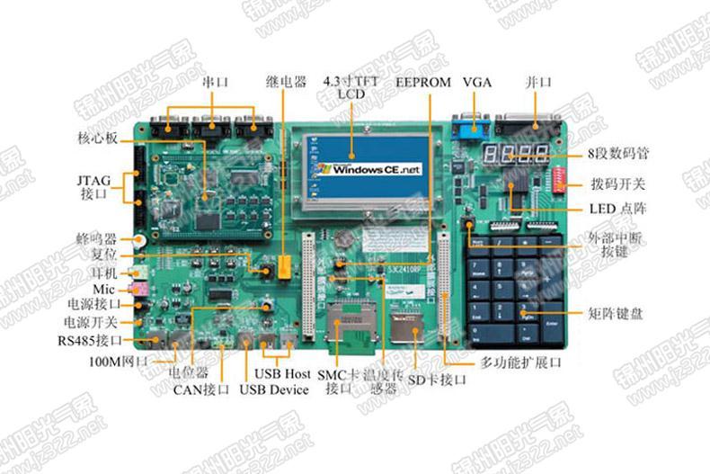 2、具有RS232接口、RS485接口、USB接口、CAN接口、SD卡接口、SMC卡接口、以太網(wǎng)、VGA輸出、LED點(diǎn)陣、AC97接口、矩陣鍵盤(pán)。