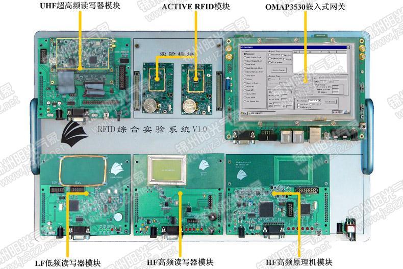 RFID創(chuàng)新教學(xué)實驗系統(tǒng)采用模塊化設(shè)計,由UHF超高頻部分、HF高頻部分、LF低頻125K部分、HF高頻原理機部分、Active RFID、嵌入式網(wǎng)關(guān)及通用供電通信底板等7部分組成。各個模塊可以單獨使用形成獨立的功能單元,也可以全部插接到底板形成完整的系統(tǒng),系統(tǒng)具備智能掃描功能,可自行掃描當(dāng)前接入的所有模塊。
