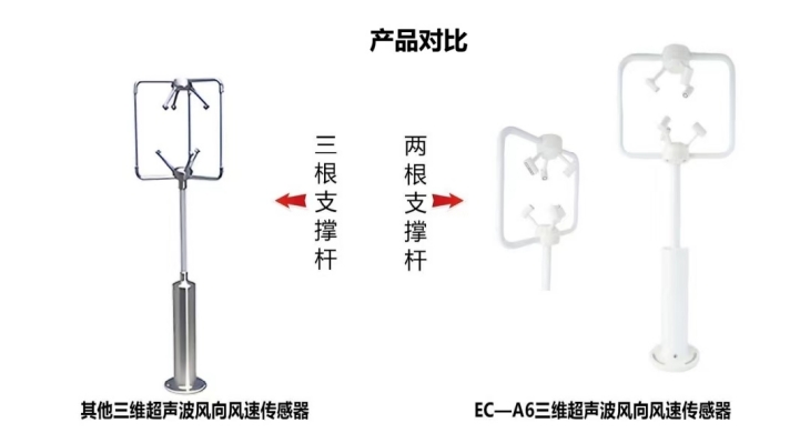 兩根支撐桿對比三根支撐桿的優(yōu)勢在于當(dāng)實(shí)際測量風(fēng)向風(fēng)速時(shí),減小支撐桿產(chǎn)生的風(fēng)阻,使測量結(jié)果更精確。