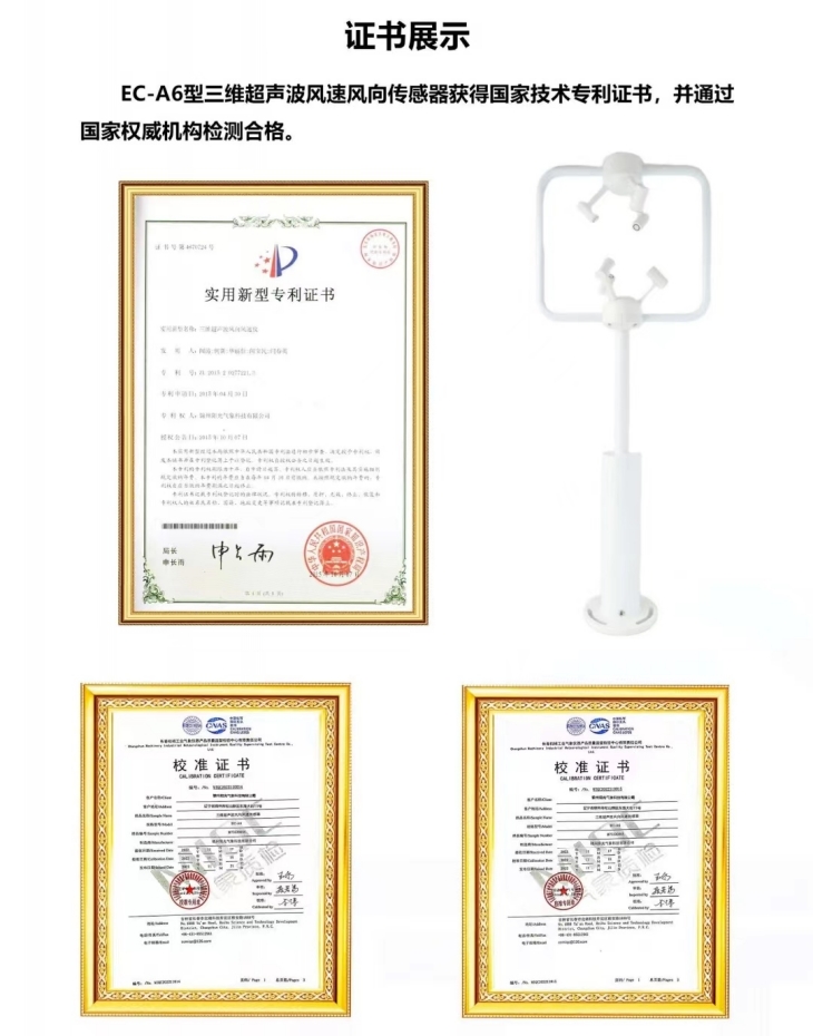 EC-A6型三維超聲波風(fēng)速風(fēng)向傳感器采用先進(jìn)的超聲波測量技術(shù),獨(dú)特的兩根支撐桿結(jié)構(gòu)設(shè)計(jì),大大減小了風(fēng)阻的影響,提升了測量的精度。它具有全金屬材質(zhì),沒有任何移動(dòng)部件,堅(jiān)固耐用的特點(diǎn),可以同時(shí)測量水平和垂直方向的風(fēng)向, X/Y/Z軸風(fēng)速(即U、V、W矢量輸出),聲溫、聲速等參數(shù)。適應(yīng)在各種環(huán)境下,全天候、長久的正常工作,為各領(lǐng)域的氣象監(jiān)測提供可靠數(shù)據(jù)。三維超聲波風(fēng)向風(fēng)速傳感器用來測量近地風(fēng)向、風(fēng)速。廣泛應(yīng)用于城市環(huán)境監(jiān)測、風(fēng)力發(fā)電、氣象監(jiān)測、橋梁隧道、航海船舶、航空機(jī)場等領(lǐng)域。