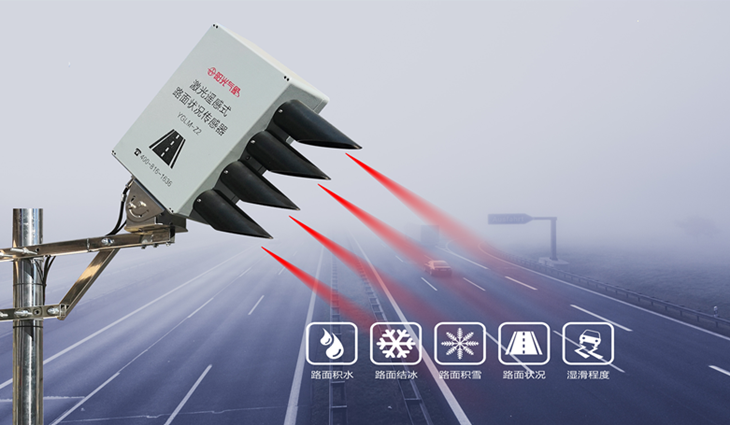 YGLM-Z2型激光遙感式路面狀況傳感器采用多光譜測量技術(shù),傳感器不需要植入路面內(nèi)即可準(zhǔn)確地檢測出道路表面結(jié)冰、積雪、水膜的厚度及濕滑程度、路面溫度等要素,監(jiān)測儀集成了微型處理器來識別道路或機(jī)場跑道的路面狀態(tài)。