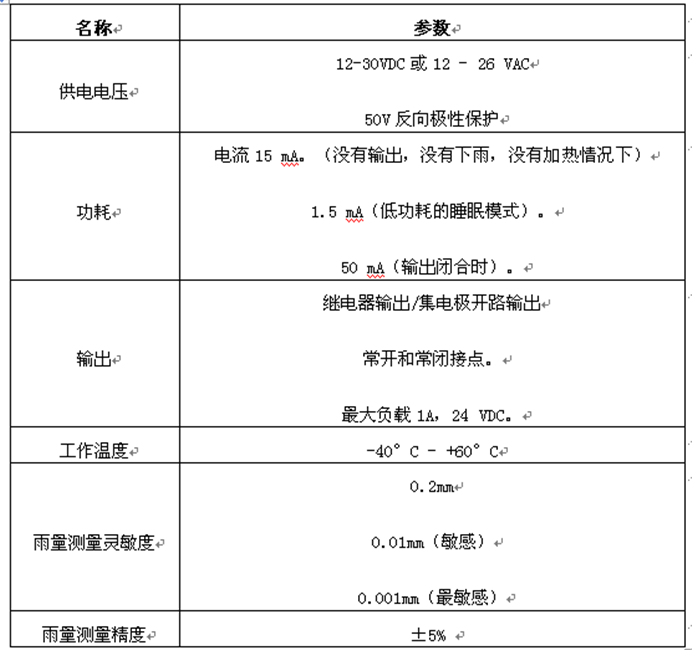 L301型光學(xué)雨量傳感器采用紅外光學(xué)檢測原理,無機(jī)械配件。因此它比其他技術(shù)的雨量計(jì)更為堅(jiān)固耐用,敏感和可靠。該傳感器極其敏感,不受其他因素干擾。不受雨水沖撞和可以移動中測量雨量。沒有裸露部件,內(nèi)部導(dǎo)體不會因接觸水而腐蝕,完全密封不會進(jìn)水。不會因?yàn)槁淙~或其他雜物影響雨量的測量。